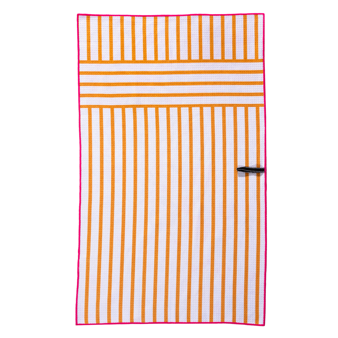 - Double sided print Waffle Weave knit construction makes this towel absorb 7 times its weight in liquid.