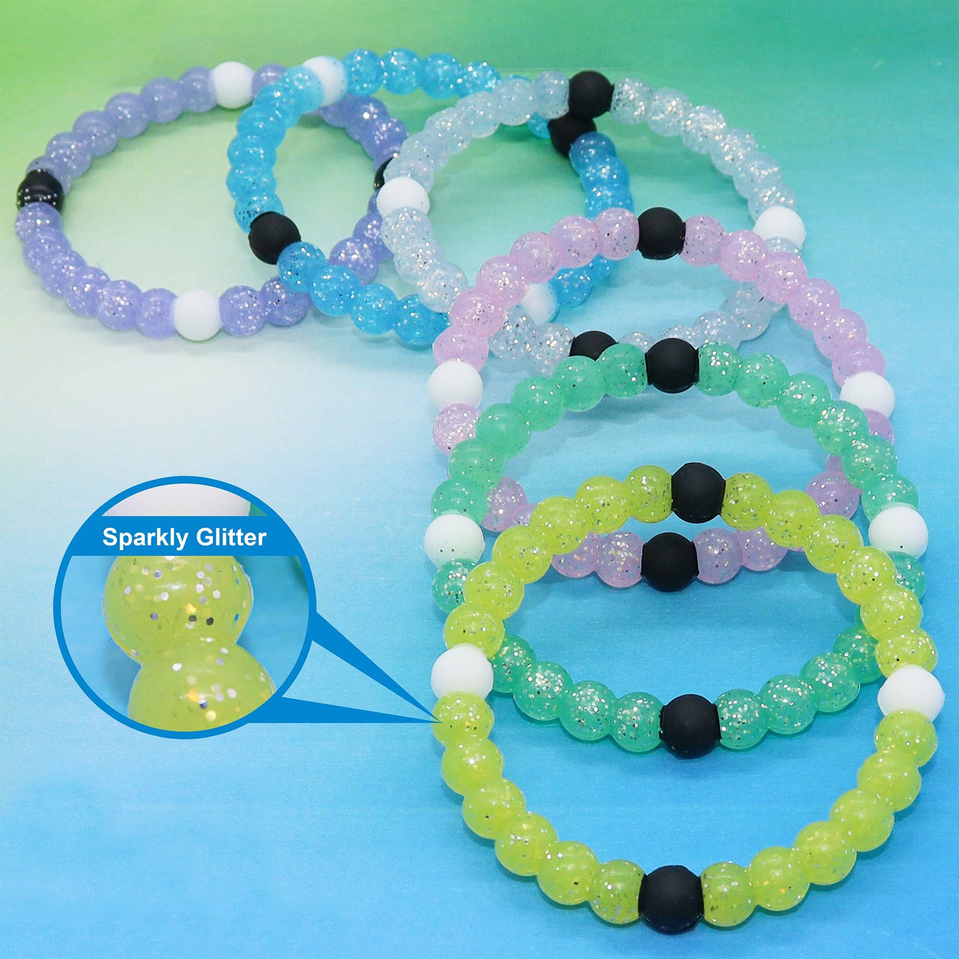 Glitter Silicone Beaded Bubble Bracelets - Assorted Colors