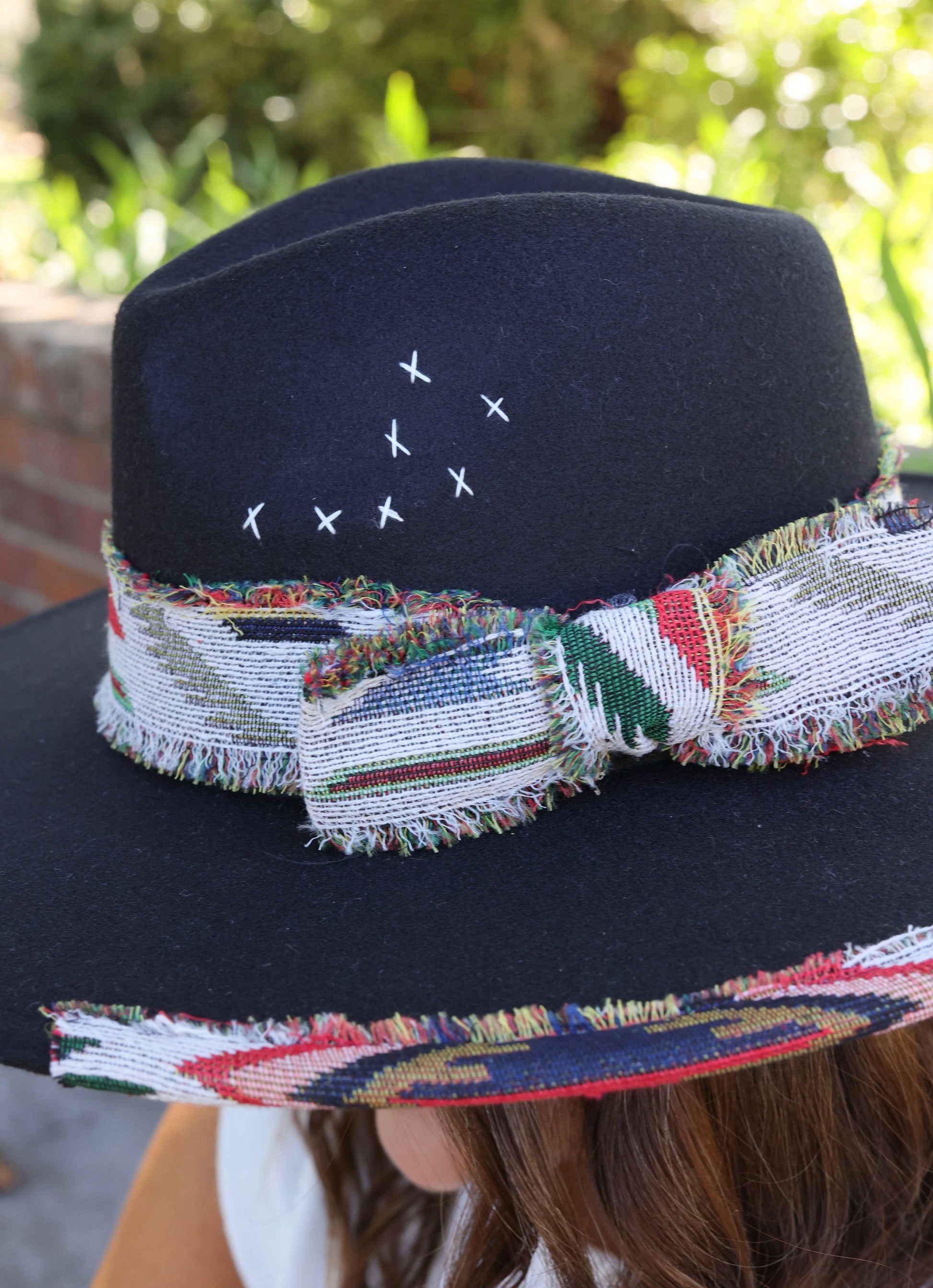 Based in the heart of Dallas, Texas, we pride ourselves on being women owned and operated. We are a small but mighty team that always strives to bring a little color, a little fun, and a lot of happy to any space, gift, or party! It's our hope that you will ditch the boring coasters and find the perfect piece that makes a statement and sparks conversation.This stylish hat is such a great accessory. It is fashionable and comfortable with handmade details. It showcases hand stitched accents and is wrapped with frayed Aztec material as well. Dimensions: * 3.5" brim * 5" crown depth * Adjustable tightness * 100% polyester