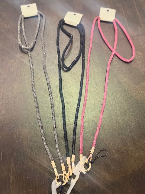 Multifunctional Crossbody Rhinestone Rope Lanyard - Silver and Black