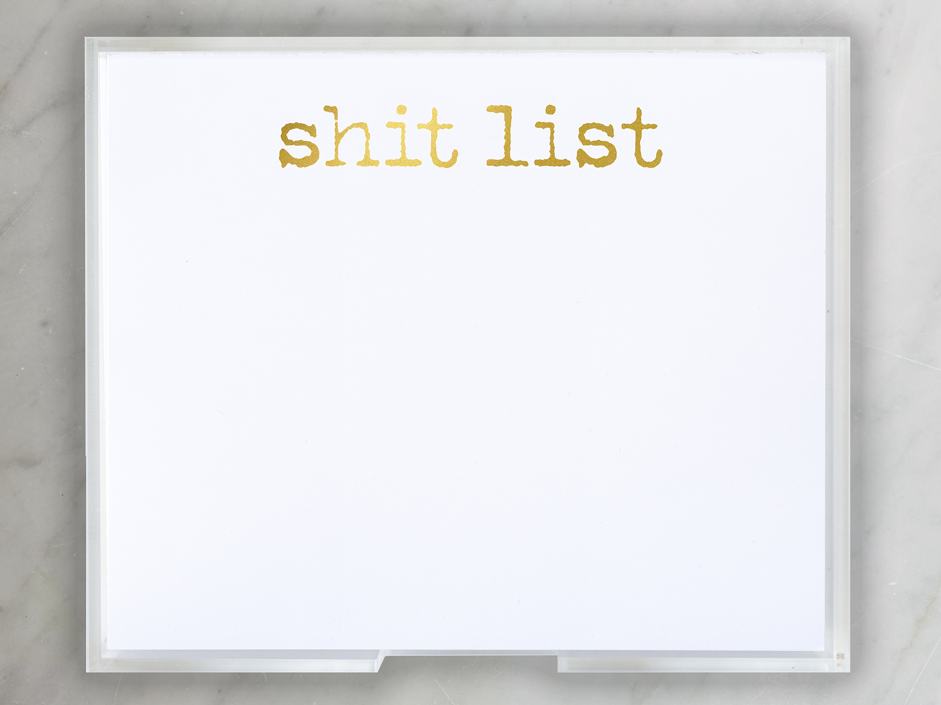 Our best seller, now in gold foil! This 8.5"x7" notepad boasts 140 sheets of luxurious, smooth white cardstock printed with gold foil. It fits beautifully in our large acrylic tray.