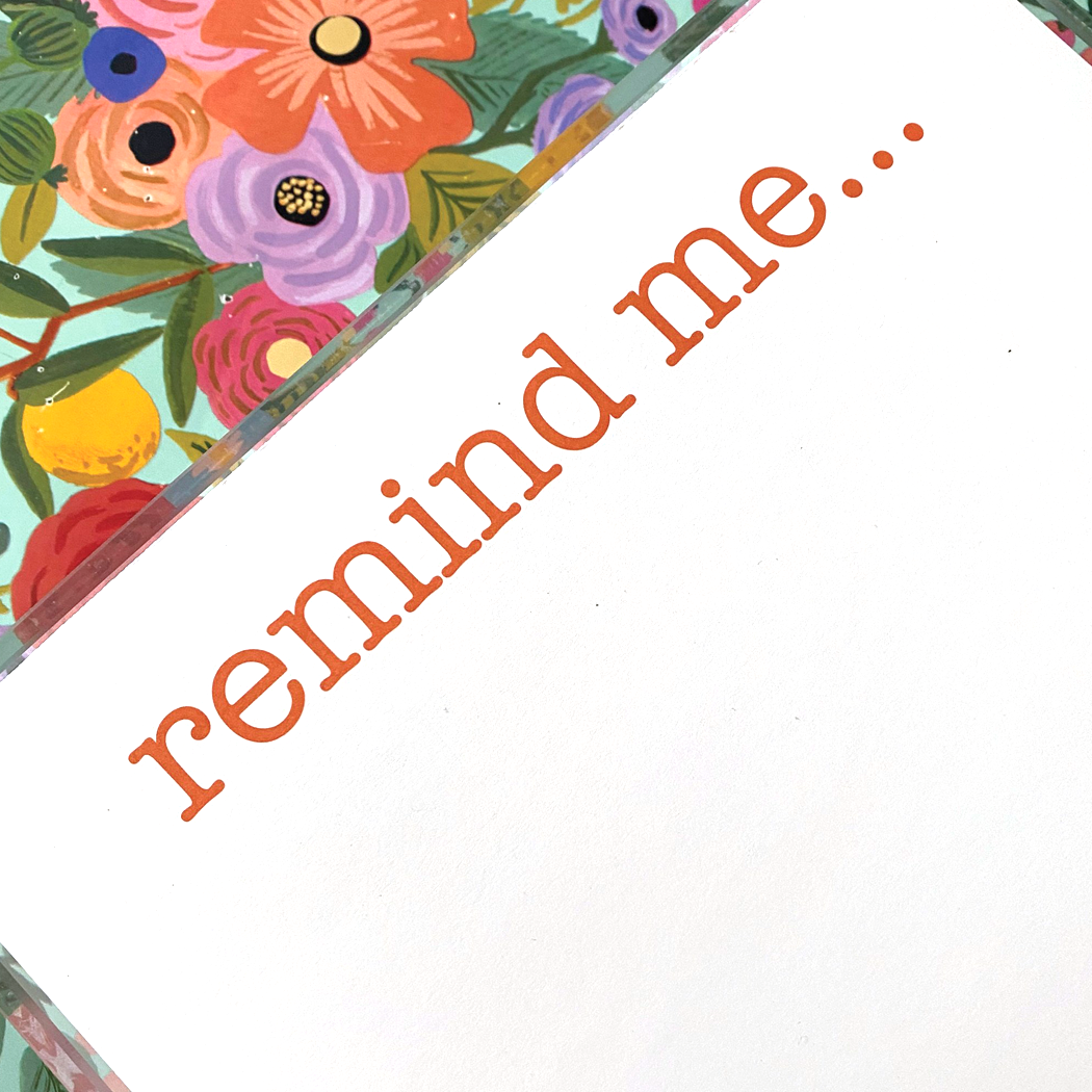 What was I supposed to do? Our 8.5x7 Remind Me notepad boasts 275 sheets of luxurious quality paper and makes the perfect gift for your forgetful friends. (Acrylic trays sold separately by the case; Ribbons not included, but we get ours at dstevensllc.com).
