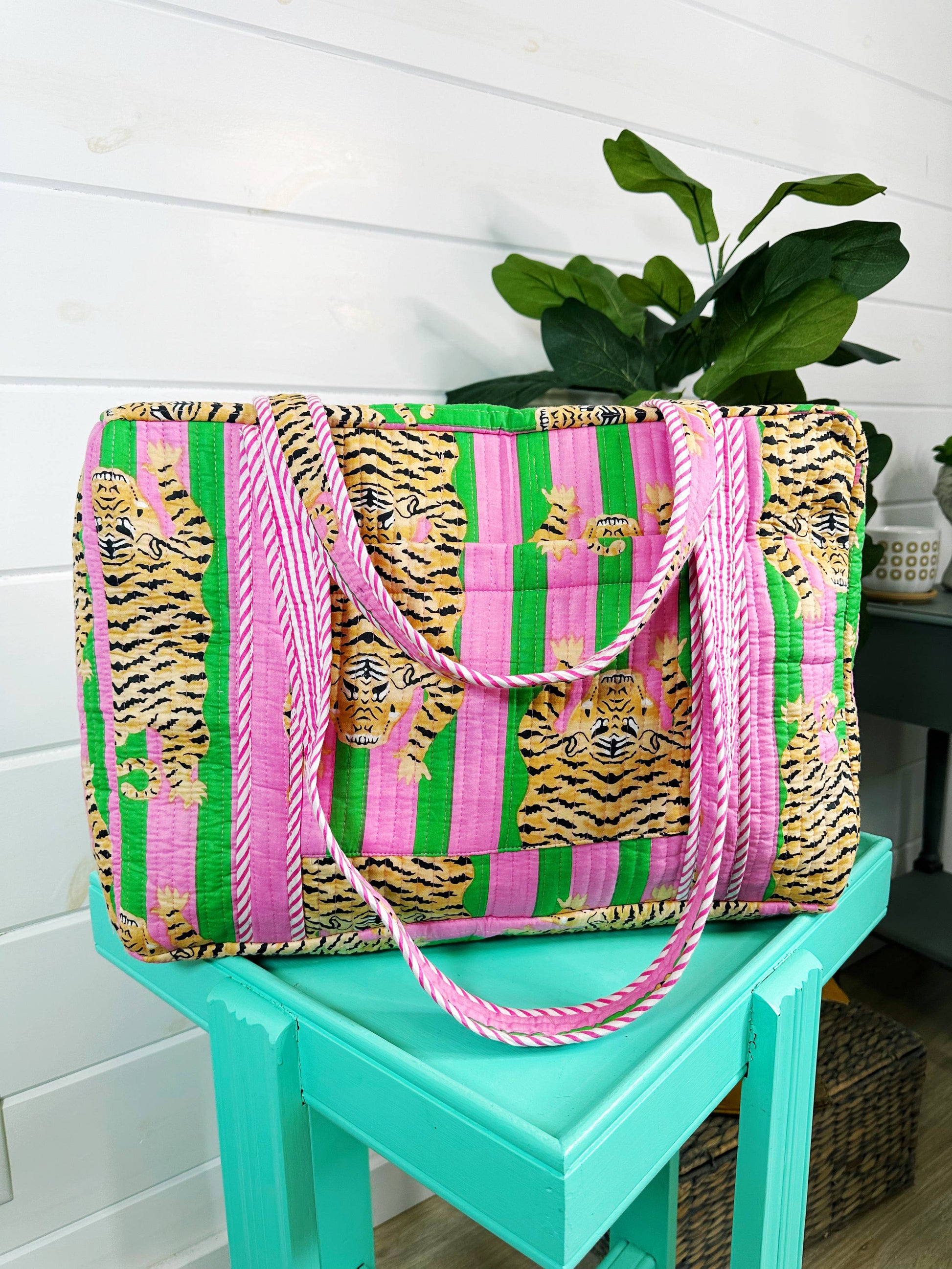 Quilted Duffle Bag | Weekender Travel Overnight Bag | Tigers