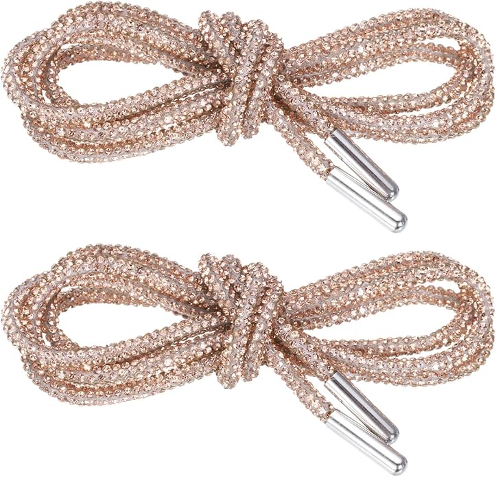 3mm 1pair Crystal Rope Shoelaces, Sparkle Shoe Strings, Glitter Laces - Rose Gold Cystals