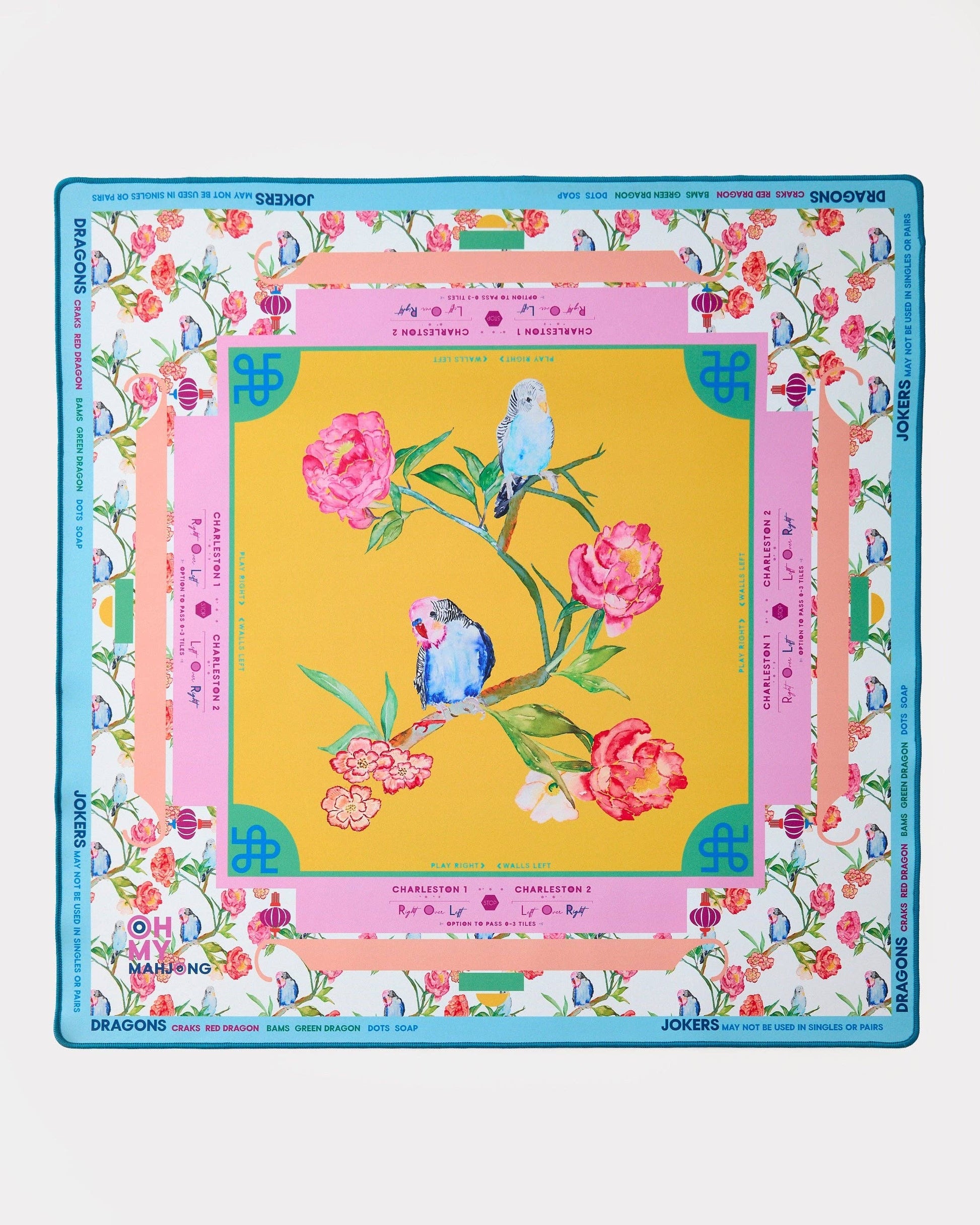 Step into the enchanting world of Mahjong with the Spring Fling Mahjong Mat – a vibrant collaboration of spring florals and bright colors that will infuse any room with joy and excitement! With every game night on the Spring Fling Mahjong Mat, you'll be transported to a whimsical paradise surrounded by the vibrant hues of springtime blossoms. Its non-slip surface ensures that your game stays in place, allowing you to play with the confidence of a true mahjong pro. And, with essential rules for American Mahjong thoughtfully placed along the sides, you'll have everything you need to dive into the game with ease!