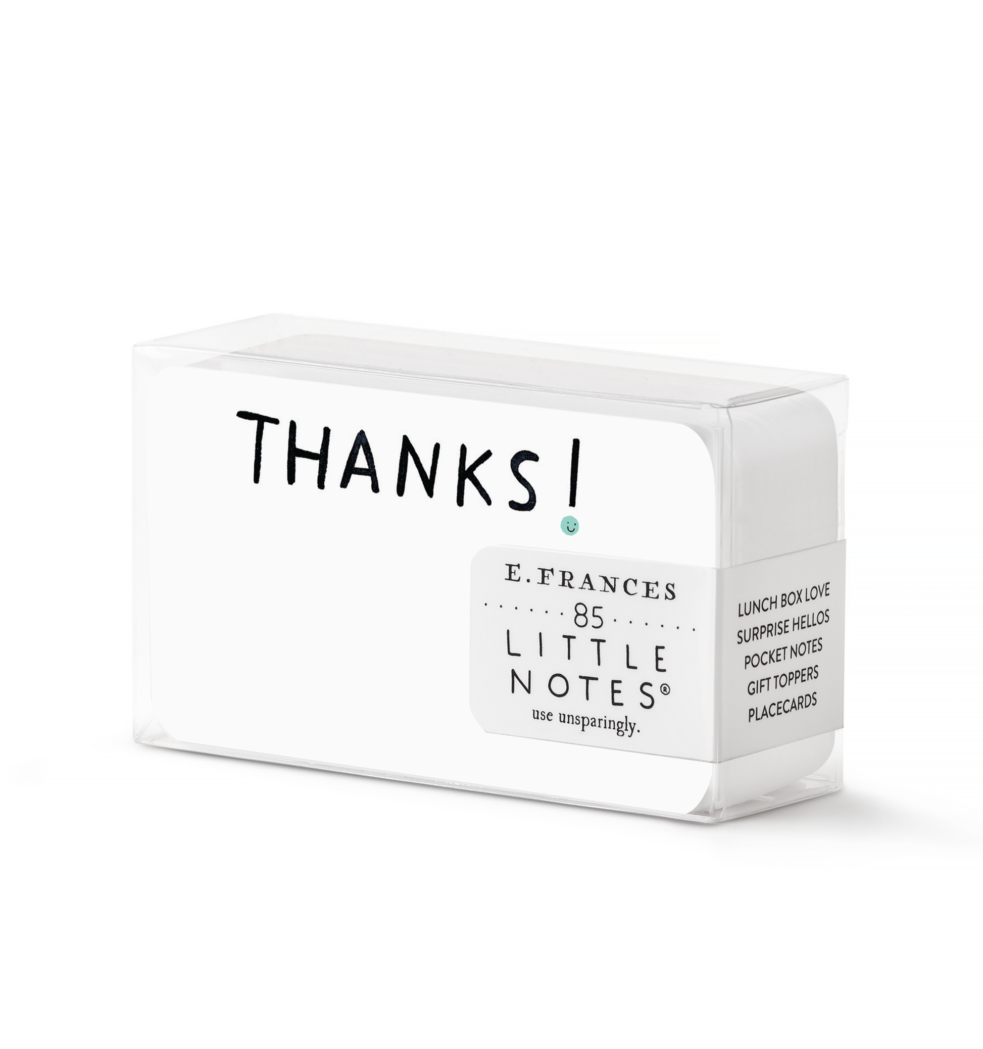 Yes, you read that correctly. Eighty-five sweet little chubby cards, cozily boxed together for you to use unsparingly as place cards, surprise notes, lunchbox love... It's like getting to use the good china every day - don't save them for special occasions, there are 85 for pete's sake! Get creative and tag your social media pics #LittleNotesInTheWild and show us how you use your Little Notes! Made in the USA. size 3.5 X 2 INCHES quantity 85 FLAT CARDS WITH FUN BACK feature SINGLE STYLE PER BOX
