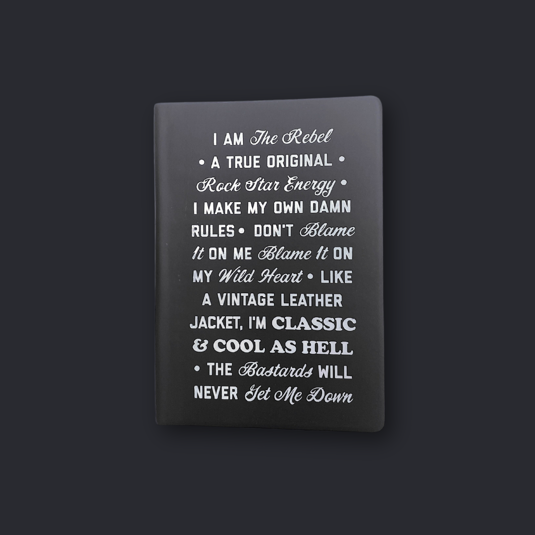 THE ORIGINAL MANTRA: I am the rebel • A true original • I make my own damn rules • Don’t blame it on me blame it on my wild heart • Like a vintage leather jacket • I’m classic and cool as hell • The bastards will never get me down